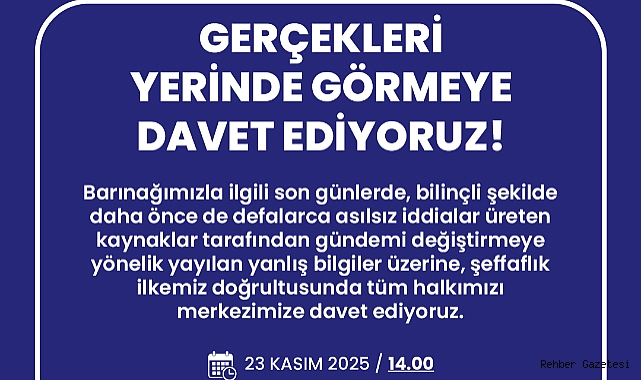 Didim Belediyesi, Sokak Hayvanları Tedavi ve Geçici Bakım Merkezi hakkında son günlerde bilinçli olarak dolaşıma sokulan ve daha önce de benzer kaynaklar tarafından üretilen asılsız iddialar üzerine, kamuoyunun doğru bilgiye doğrudan ulaşabilmesi amacıyla merkezde yerinde inceleme ve bilgilendirme programı düzenliyor. Program kapsamında, 23 Kasım Pazar günü saat 14.00’te tüm vatandaşlar merkeze davet ediliyor.
