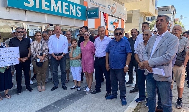 CHP Didim İlçe Örgütü ilçe binası önünde hayat pahalılığı hakkında basın açıklaması yapıyor. CHP Didim İlçe Başkanı Nurettin Koçak, ilçe yöneticileri, vatandaşlar ve Didim Belediye Başkanı Ahmet Deniz Atabay bir aradalar.